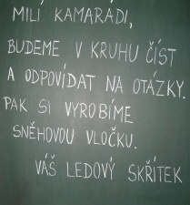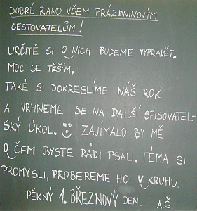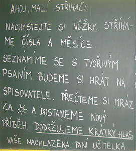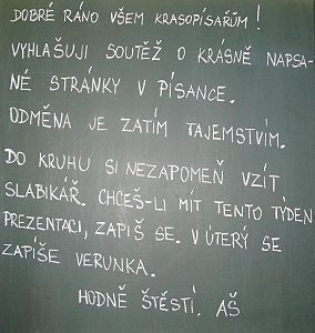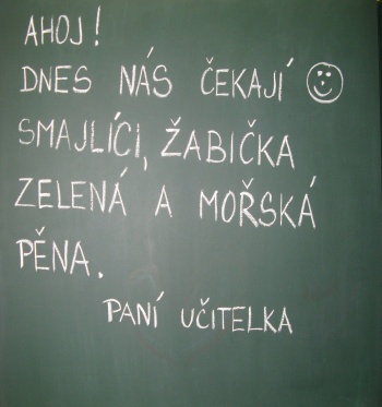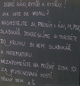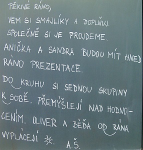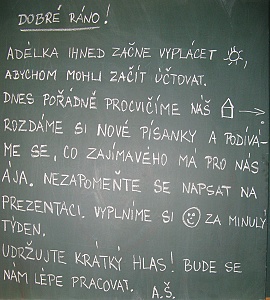 Každičké ráno děti objeví na tabuli vzkaz, který jim buď oznamuje, co budeme dnes dělat a nebo je chválí za práci, kterou odvedli minulý den.